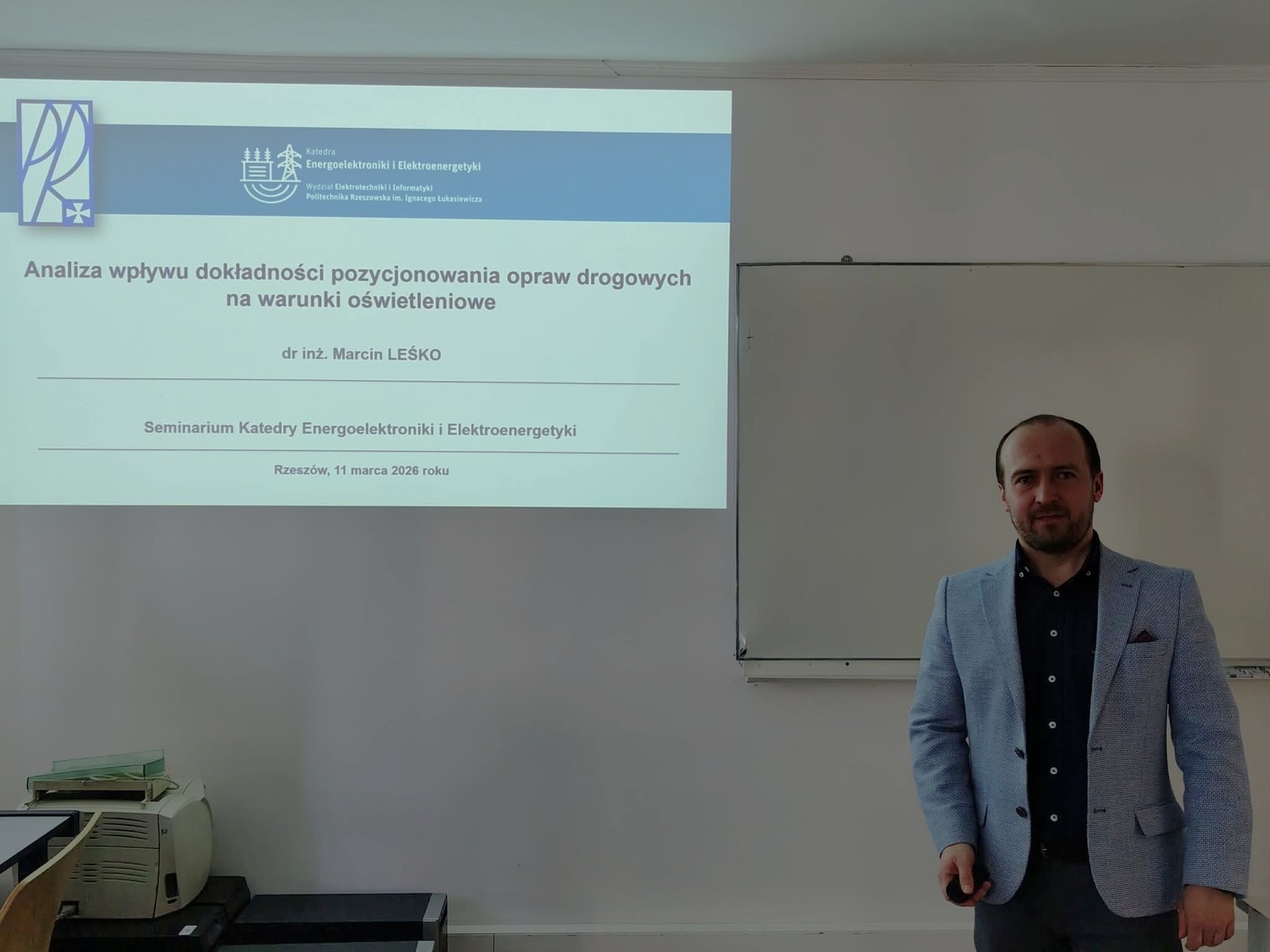 Podczas ostatniego seminarium Katedry, Pan dr inż. Marcin Leśko zaprezentował badania dotyczące wpływu precyzji instalacji oświetlenia drogowego na bezpieczeństwo i efektywność energetyczną naszych dróg.