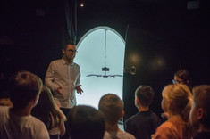 W tajniki techniki świetlnej uczniów wprowadził Pan dr inż. Krzysztof Baran. Uczniowie z zaciekawieniem podziwiali projekty iluminacji budynków, niektórych dobrze im znanych. Również i tutaj Pan doktor musiał zmierzyć się z dużą ilością pytań dotyczących prezentowanych zagadnień.
