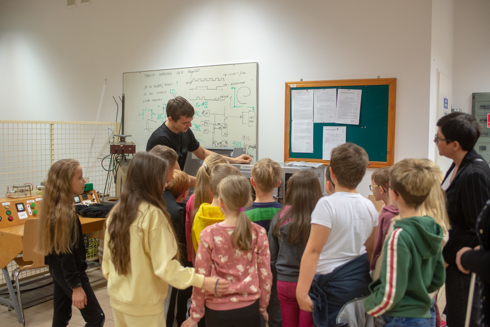 Dnia 10.11.2022r. z wizytą do laboratoriów Techniki Wysokich Napięć i Techniki Świetlnej, przybyli uczniowie klasy II B i II D Szkoły Podstawowej Nr 15 w Rzeszowie.
