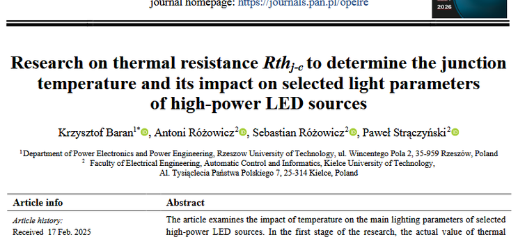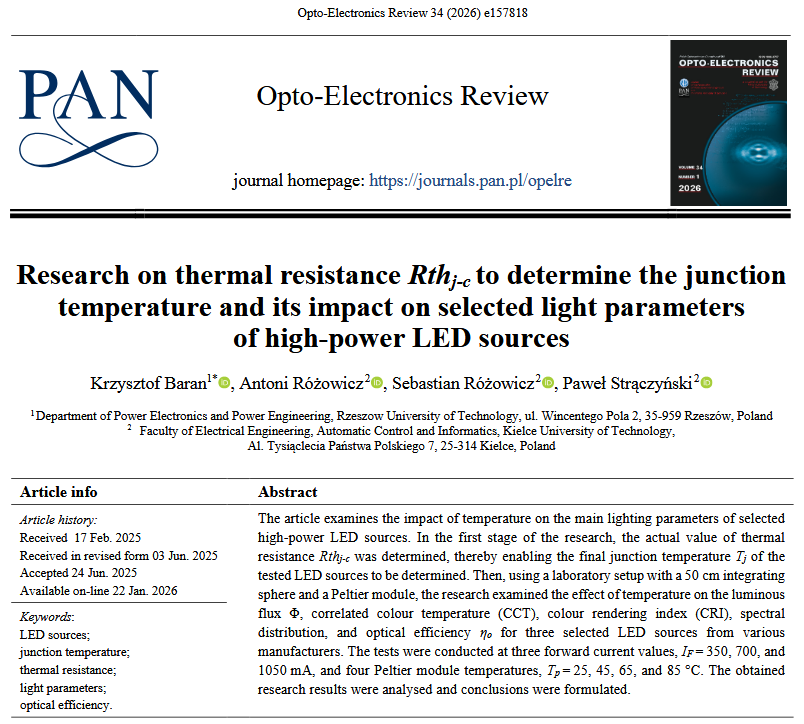 Z przyjemnością dzielimy się informacją o nowym artykule naukowym, którego wiodącym autorem jest nasz pracownik, dr inż. Krzysztof Baran z Katedry Energoelektroniki i Elektroenergetyki. Praca ukazała się w prestiżowym czasopiśmie „Opto-Electronics Review” (100p według listy MNiSW).