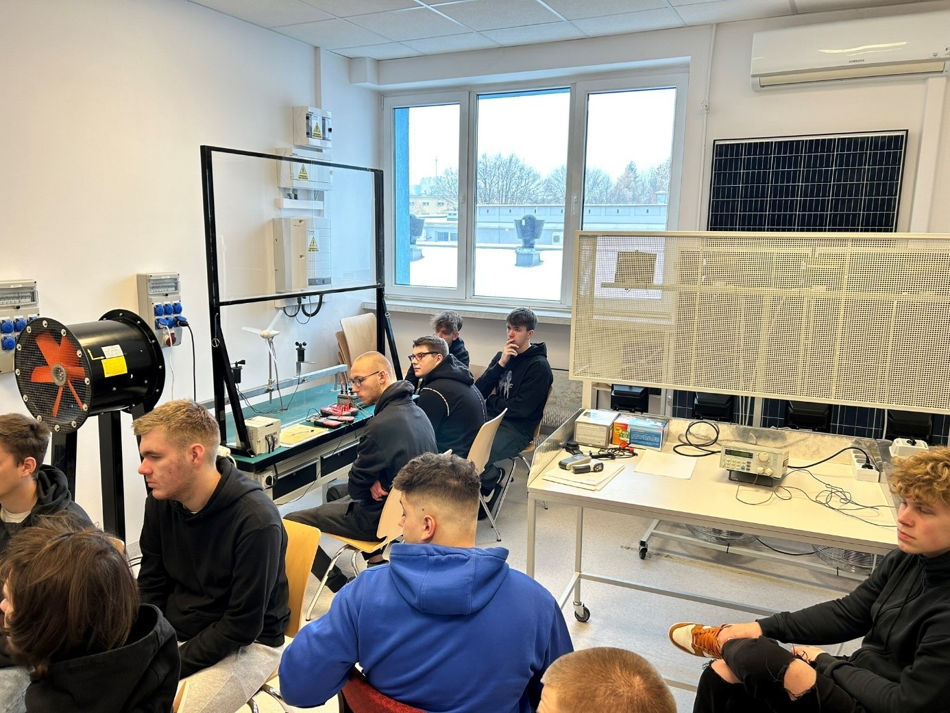 28 listopada 2023r. uczniowie klasy 5AS (technik elektronik ) z Zespołu Szkół Technicznych w Rzeszowie odwiedzili laboratorium Odnawialnych Źródeł Energii działające przy Katedrze Energoelektroniki i Elektroenergetyki PRz. Uczniowie mieli okazję poznać sposoby przetwarzania energii w modułach fotowoltaicznych, turbinie wiatrowej oraz pompie ciepła. Ćwiczenia wykonane były pod nadzorem Pana dr inż. Dariusza Sobczyńskiego. Opiekunem grupy uczniów był Piotr Pawłowski.